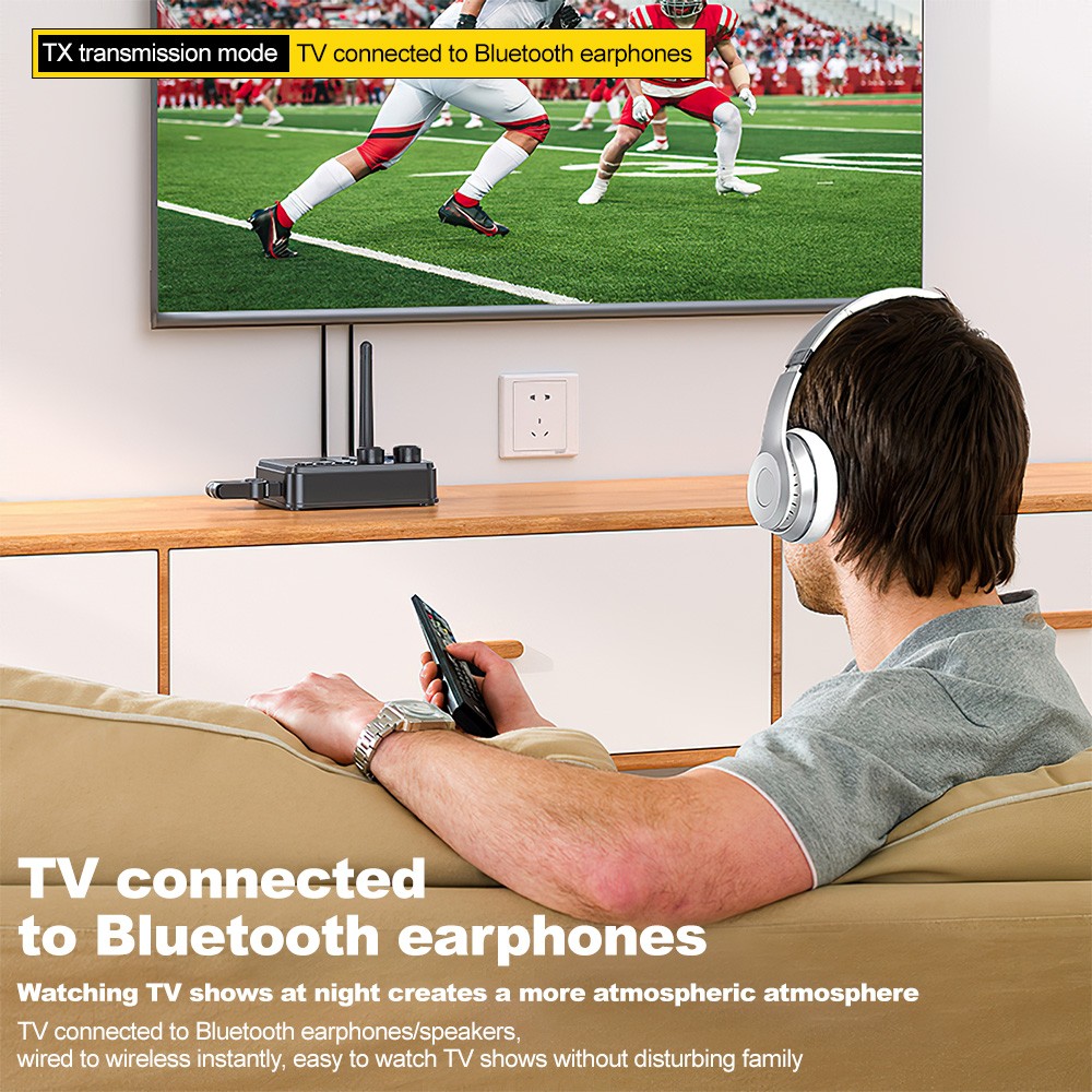 Bluetooth5.4 Wireless Transmitter Receiver TV Car Stereo Audio Adapter 3.5mm AUX. -Rich interfaces, compatible with various device connection ports, AUX audio input, audio output, coaxial input, fiber optic input, multi device expansion, stronger compatibility.